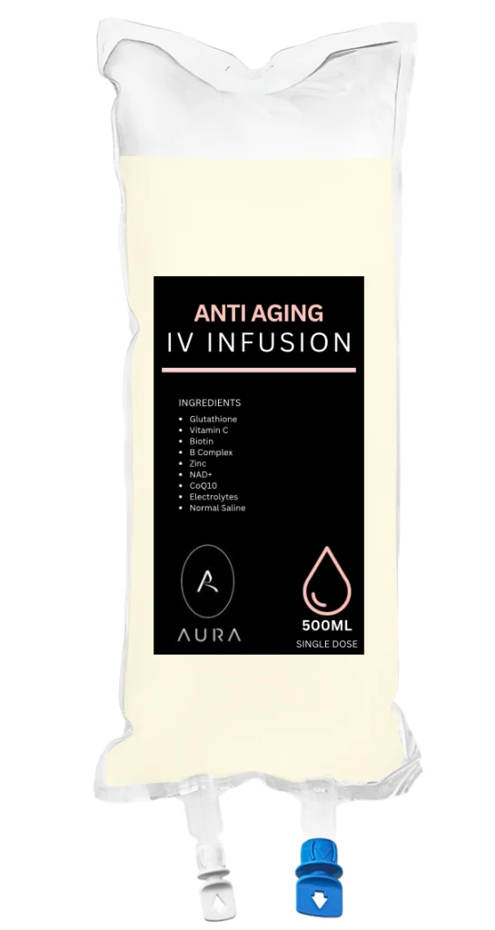 Support your body’s natural vitality with our Anti-Aging Infusion. Packed with antioxidants, vitamins, and nutrients, this treatment encourages collagen production, strengthens cellular repair, and helps protect against oxidative damage. Refresh your skin, boost your energy, and feel vibrant from the inside out.